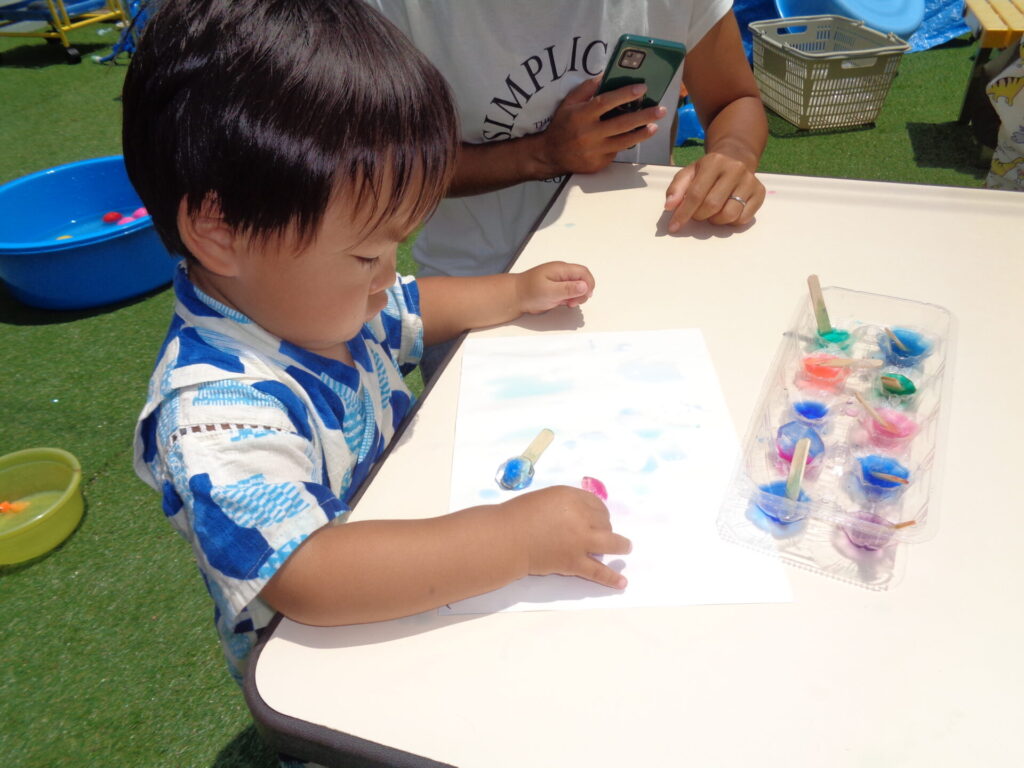 色付き氷でお絵描き♪