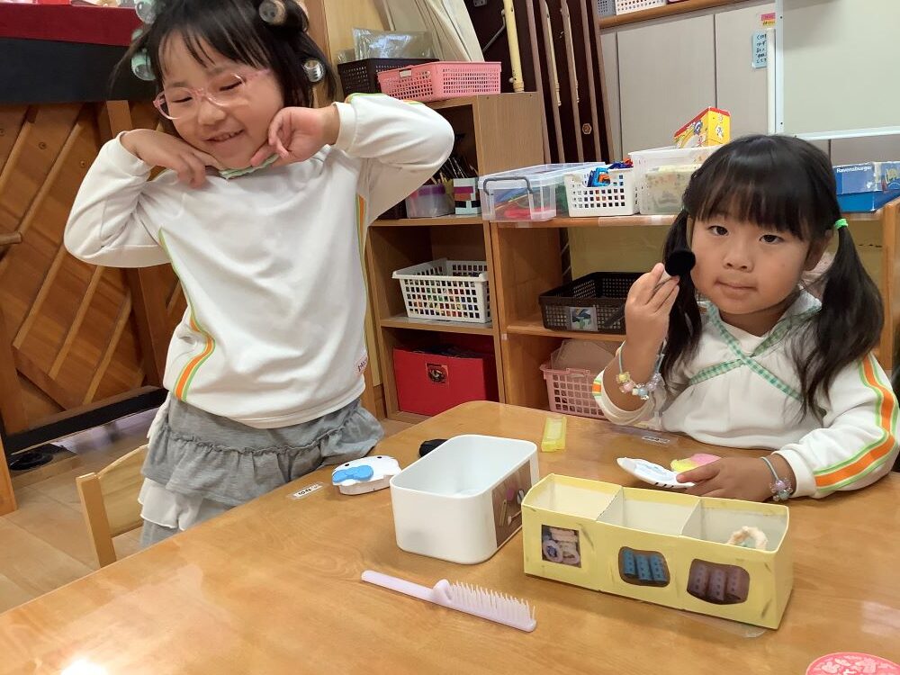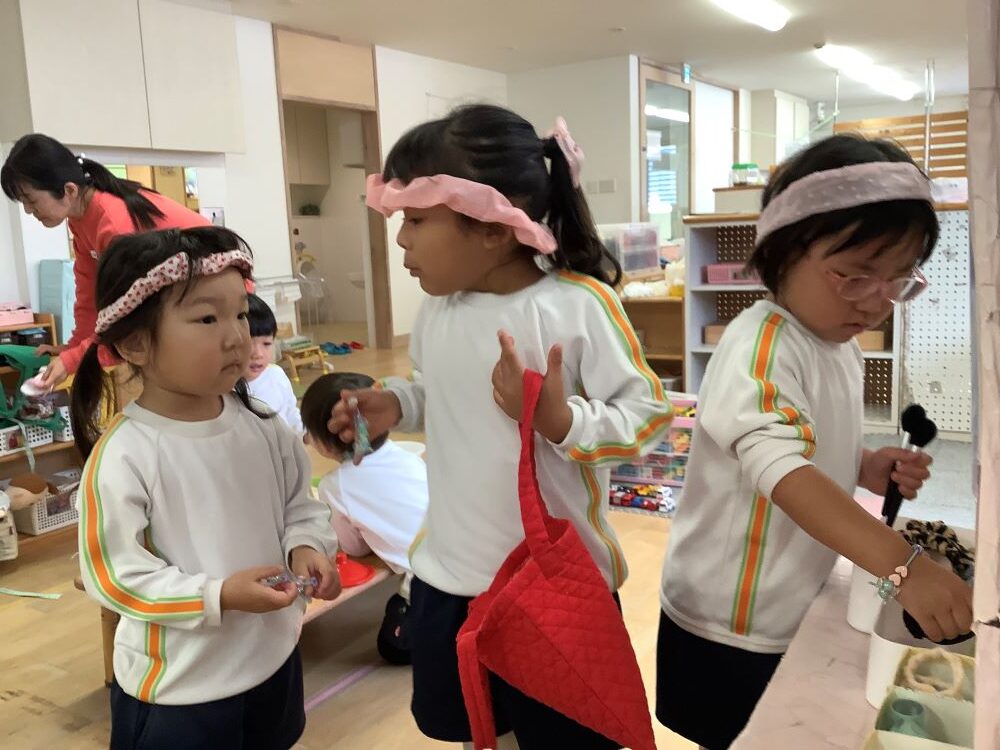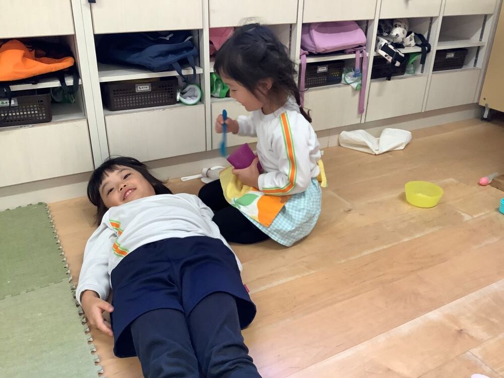 4月に比べてごっこ遊びなど友達と一緒に遊ぶことが上手になりました!日々の遊びの中でも毎回しっかりと設定や物語があり、友達と一緒に遊ぶことを楽しんでいます。外遊びではボールやだるまさんがころんだ、かけっこなどたくさん走って身体を動かす元気いっぱいなはと組の子どもたちです(^^)