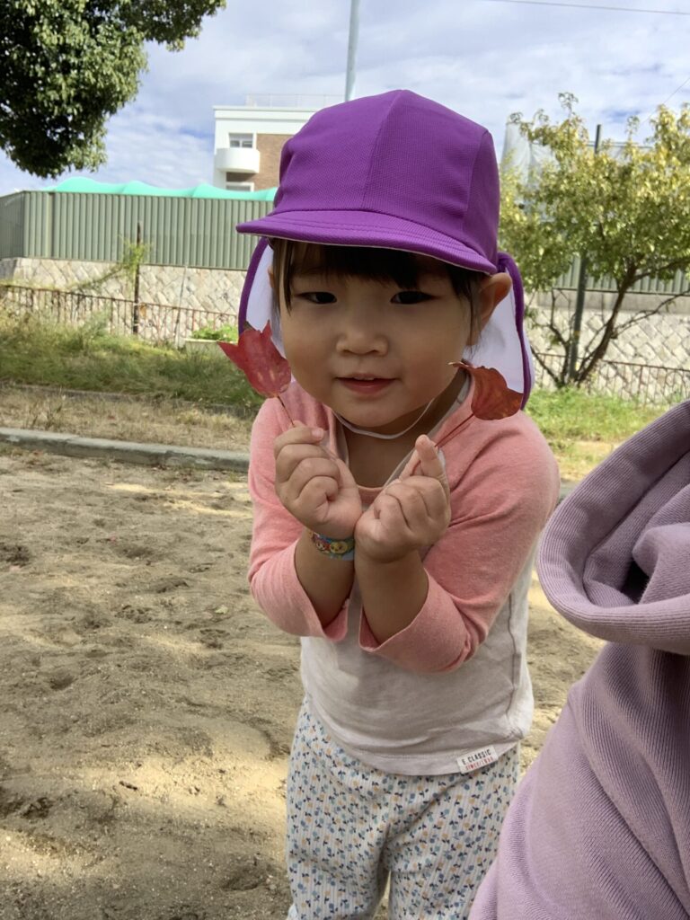 公園で赤やオレンジ、黄色の葉っぱやどんぐりを集めて遊ぶ姿が見られるようになりました☺