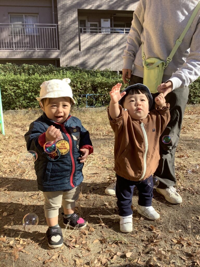 ひよこ組さんはシャボン玉が大好きだね♪立っちも上手になってきたね(*^^*)