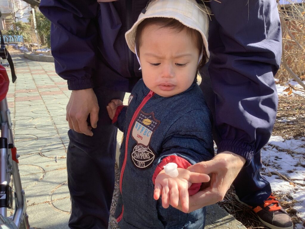 2月、雪が積もった日のことです(*^^*) 子どもたちと一緒に雪に触れてみました。初めて見る雪に最初は少し戸惑ったり、手を引っ込めたり、触りたくなさそうにじっと見つめる姿も見られました。しかし、保育士がそっと触ってみせたり、友達が触っている様子を見たりするうちに少しずつ興味が出てきたひよこ組さん。小さな手の平で雪をそっとのせて、見つめている姿がとても可愛らしいです♡冬ならではの自然に触れる貴重な日でした☆来年は雪だるま作ってみたいな♪