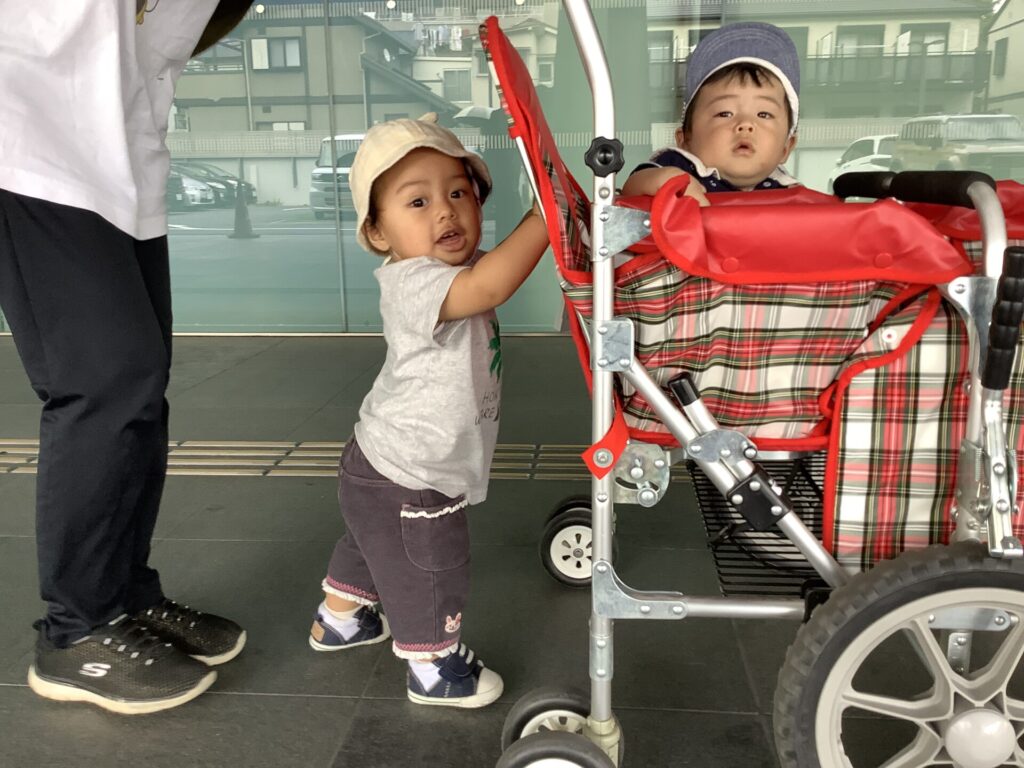 お散歩カートがごとごと進む度に、ニコニコ笑顔になったり、きょろきょろと景色を見たり…。「わあ、きれいなお花だね」と話しているように指を差して保育士に伝えようとする姿もあり、毎日がとってもかわいいお散歩時間です(*^^*)♡