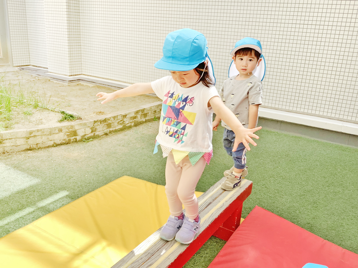 園での一日 乳児(3歳児未満) 7:00 開園 順次登園 自由遊び 9:00 朝のおやつ 水分補給など 9:30 設定保育 自由遊び 午前睡をするお子さんもいます 11:00 給食 12:00 午睡 14:45 起床 16:00 自由遊び 順次降園 18:00 延長保育 夕方のおやつ 18:30 30分延長保育児降園 19:00 1時間延長保育児降園 自由遊び① 自由遊び② 給食 設定保育① 設定保育①